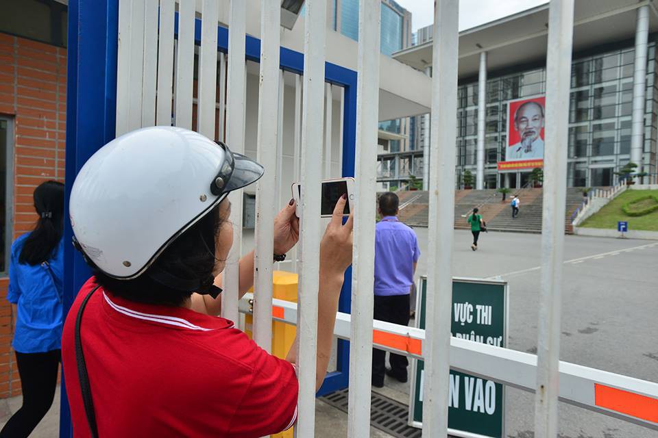 Tại khu vực thi của Trường THPT chuyên Hà Nội - Amsterdam trong sáng 25/6, các phụ huynh đưa con đến từ khá sớm.Để đảm bảo an ninh, an toàn, lực lượng công an phường đã được tăng cường từ sáng sớm.